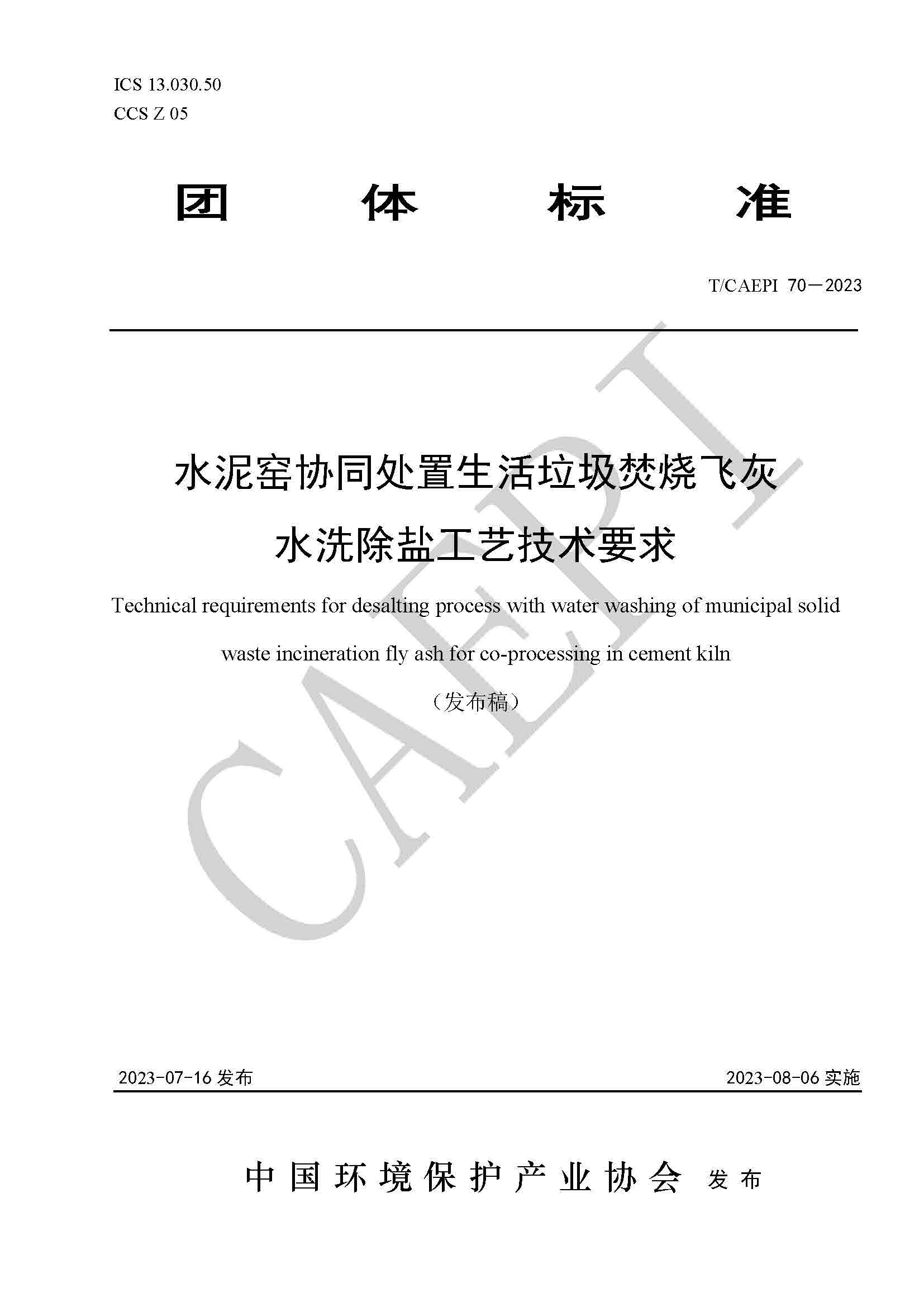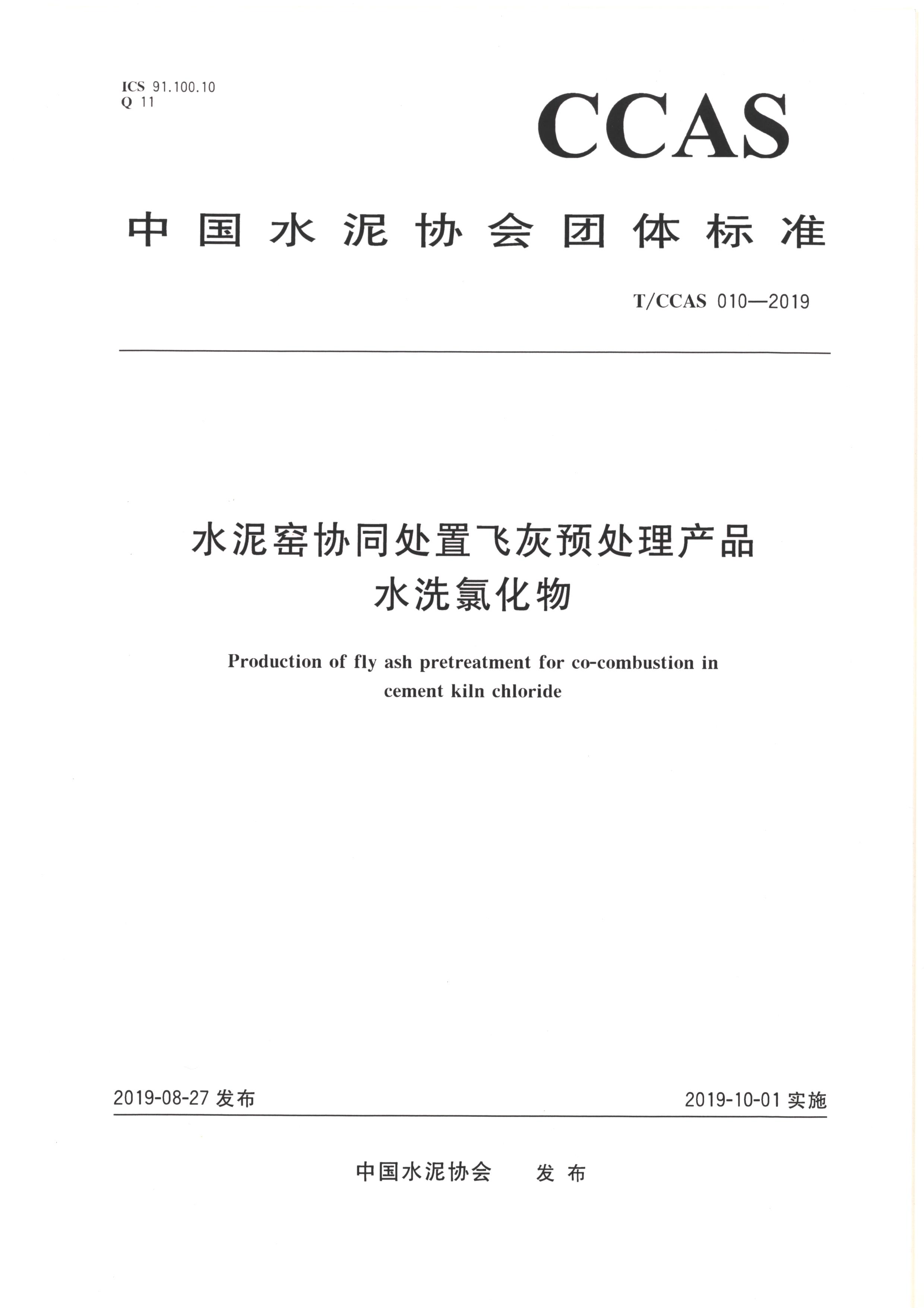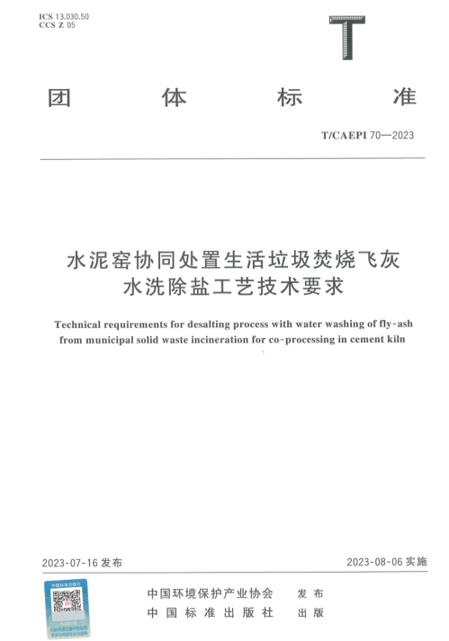 团体标准《飞灰水洗氯化物》