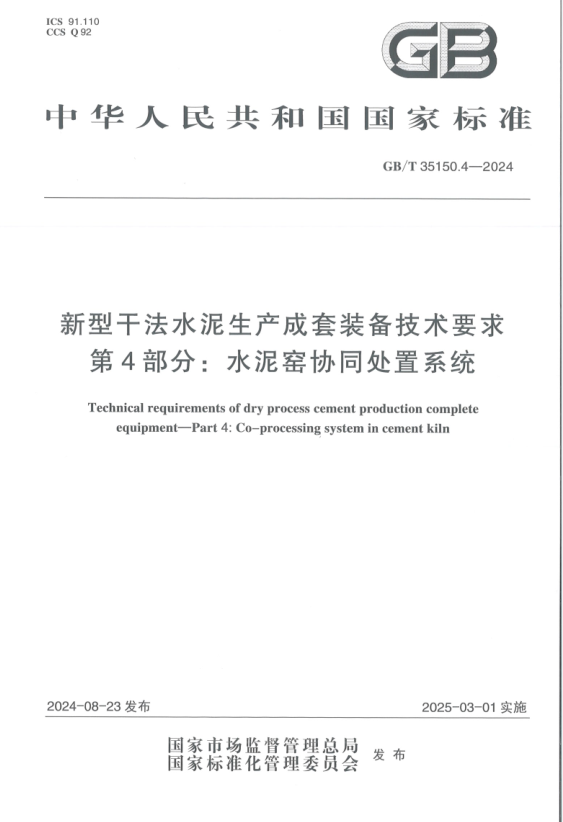 新型干法水泥生产成套装备技术要求第4部分水泥窑协同处置系统GBT35150.4-2024(1)