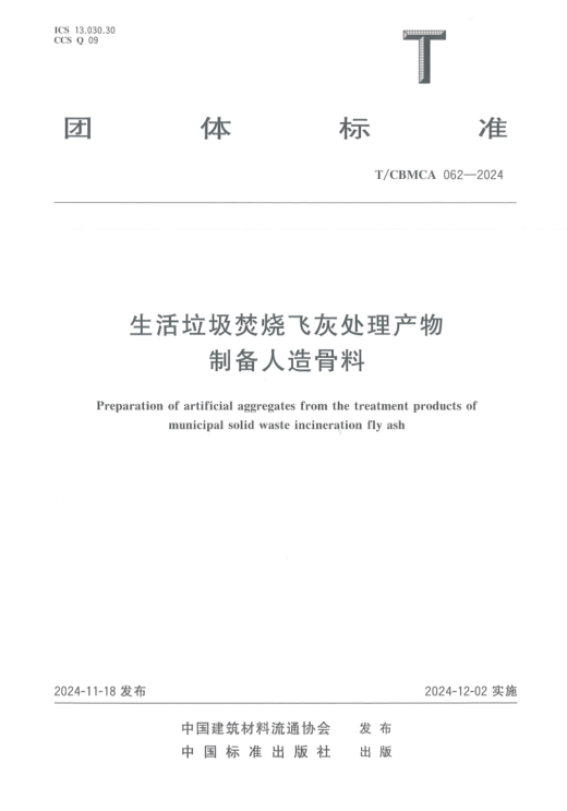 生活垃圾焚烧飞灰处理产物制备人造骨料TCBMCA 062-2024(3)
