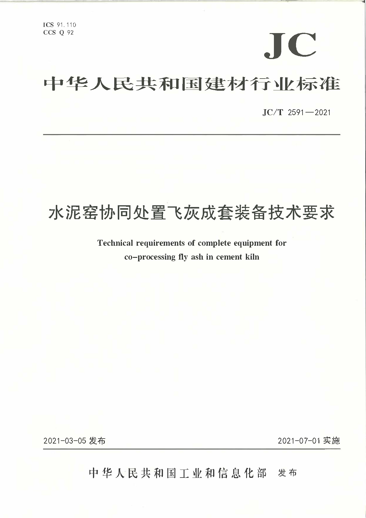 行业标准《水泥窑协同处置飞灰成套装备技术要求》1