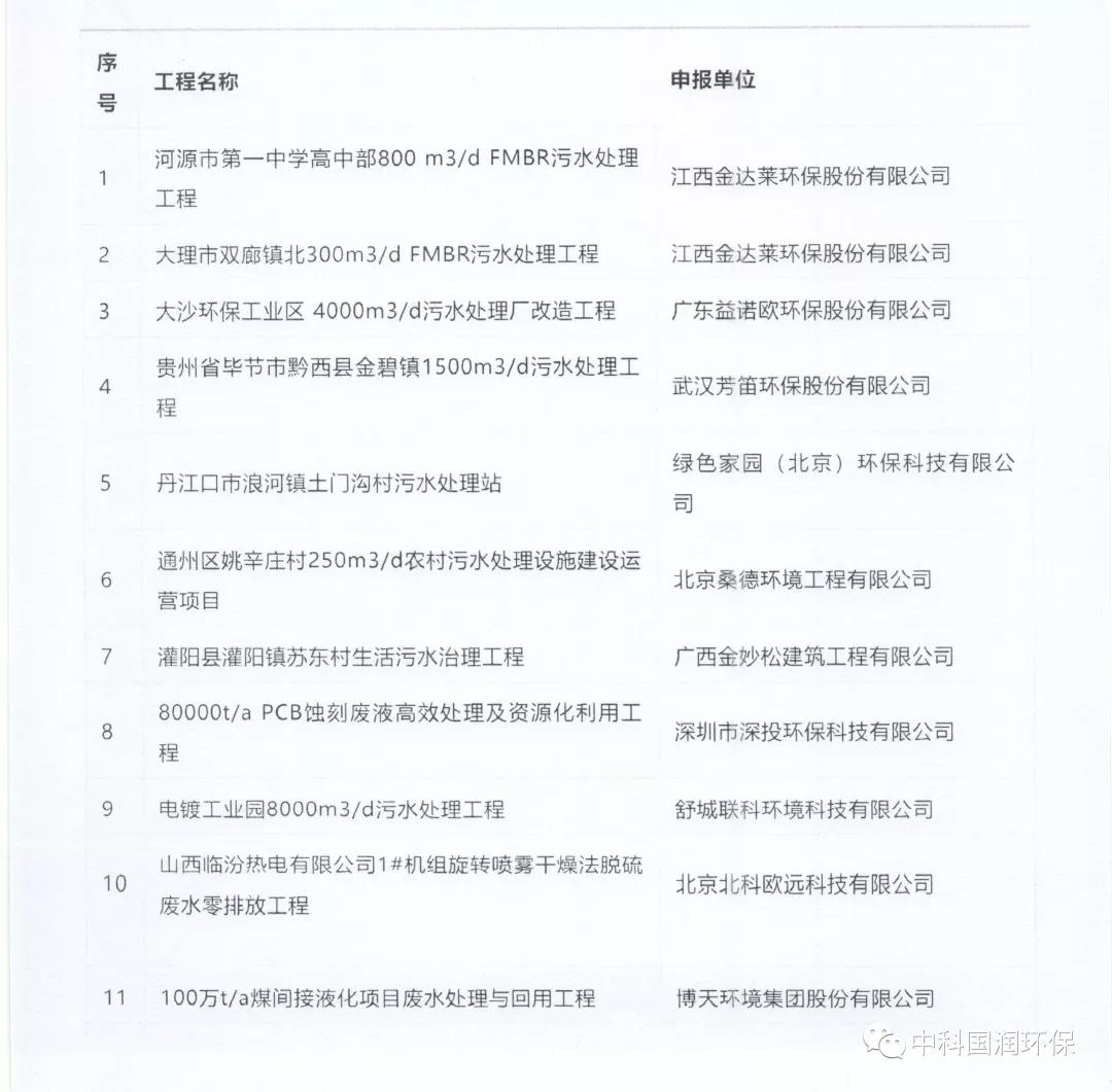 2018年重点环境保护实用技术示范工程名录(公示稿)