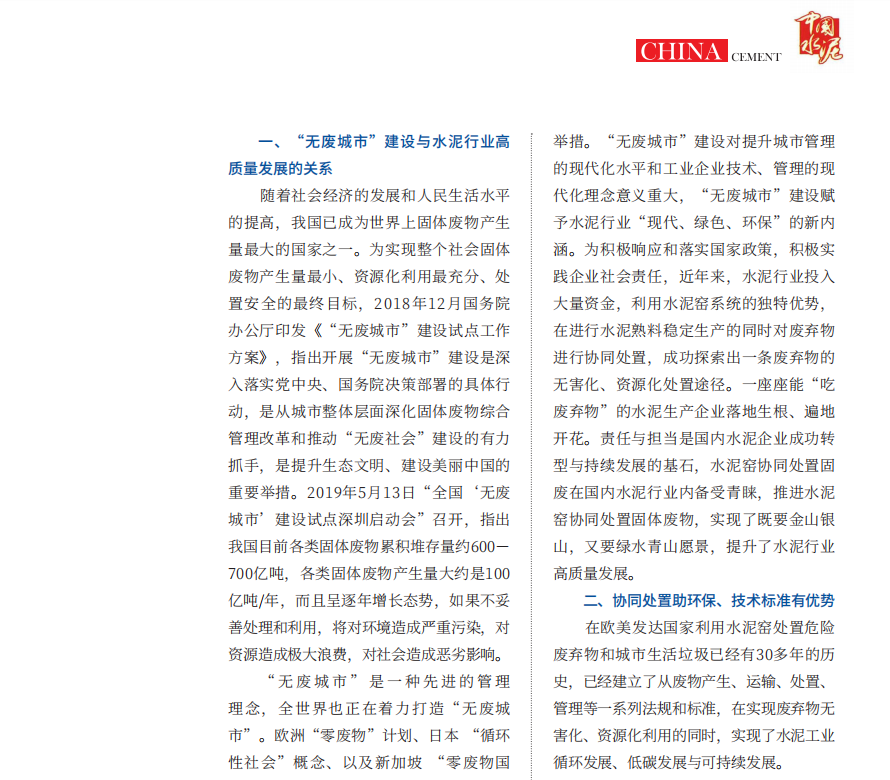 无废城市建设吹响号角,水泥行业协同处置扬帆